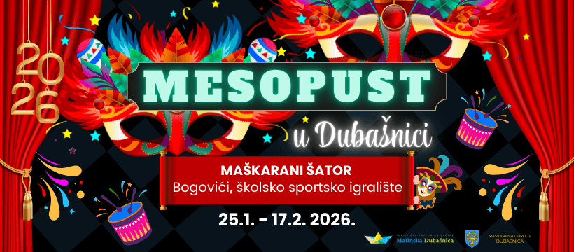 Evo ga, najveselije vrijeme godine stiže u Dubašnicu uz eksploziju maškaralih pustolovina, žive glazbe i nezaustavljivog veselja koje spaja generacije u srcu našeg zavičaja! U sklopu petog godišnjeg doba predlažemo vam da obučete svoje najbolje maske te nam se pridružite na nezaboravnim zabavama pod maskama, koje će se održati u Maškaranom šatoru, na Školskom-sportskom igalištu, u Bogovićima !